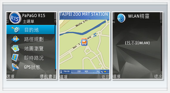 前面我们已经有提过,N82 附赠 PaPaGO! R15 卫星导航软件,但它没有预先把安装档案放在记忆卡中,而是得利用光盘安装,使用者必须注意这点。另一方面,Nokia 自家的「Nokia Maps」导航软件也内建其中,它的优点是有全球的图资,就算出国也能利用,并且可以经由 Nokia Map Loader 直接把图资装到手机里,以避免经由网络下载地图;不过图资是英文版,没有比 PaPaGO! 来得容易上手。N82 还支持 WLAN 无线网络,可以通过网络热点上网,也能拨打网络电话。