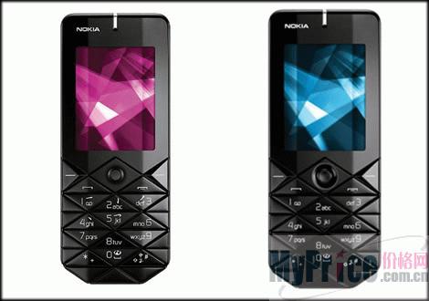 诺基亚7500的键盘采用大胆的菱形设计,而机身背部更有多重菱形图案,并拥有明显的对比度,该机下端两个边角采用菱形倒角设计,看上去格外前卫时尚,虽说这种设计灵感来自钻石,但整体感觉更近似与用钻石打造成的菠萝。
