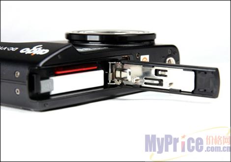 爱国者V1080采用黑色铝质金属外壳,表面经过磨砂处理之后,朦胧感很强,在灯光照射下尤其明显。镜头突出部分被黑色的金属圈包围,起到了很好的装饰的作用,显得非常的协调。整体上来看,V1080的机身做工十分精细,接缝处相当严密。V1080的外形尺寸为96 x 58 x 21mm,并非极致小巧,但也有几分秀丽,总体来看还能找到一点三星蓝调某款产品的风格。