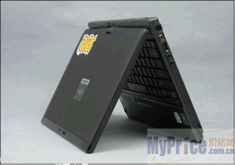 T2010A号称是全球最轻薄的一款12寸平板电脑,整机仅重约1.58Kg,电池设计在键盘下方,6芯5800mAh电池待机时间长达9小时,而电池其实就是手托板;键盘面板上没有采用触摸板,指点杆颜色为绿色,区别于Thinkpad的红色与DELL的蓝色;U7600超低电压版处理器功耗不大,让整机的热量控制更为放心,1G的迅盘加入也保证了整机的性能。