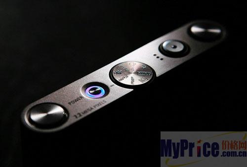NV3的机顶十分独特,和i6完全不同。机顶的模式拨盘设在正中间,这种设计之前只在尼康的P3、P4上见到过。许多人不知道既定左右两个银色圆形的东西是什么,其实这是NV3的一大改进——立体声扬声器,用户不仅可以连接耳机听音乐看电影,也可以直接让相机的扬声器播放,和朋友一起分享。
