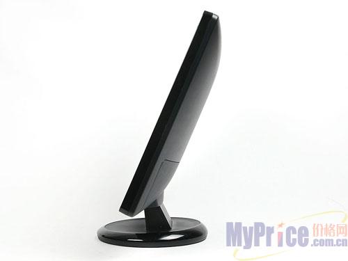 得益于烤漆材质的边框设计,三星226BW整体看上去显得十分大气,底座比较低,同时边角和底座采用圆润设计,给人一种憨厚实在的感觉。右上角标识灰阶 2ms响应时间和3000:1动态对比度技术,这两项指标在LCD领域均是最高的,这也预示着226BW是迄今为止性能最强的22英寸宽屏LCD。