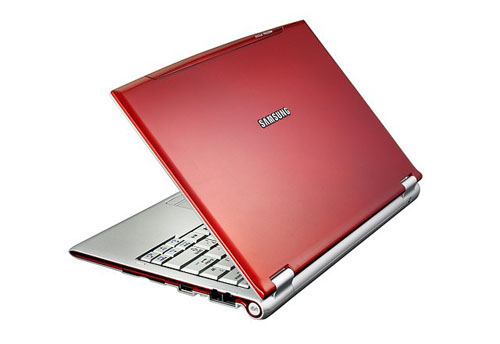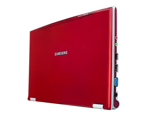 Q40产品造型上延续了三星Q30笔记本的设计风格。顶盖中央黑底白字的商标,圆筒状的电池,圆滑曲线型四周边缘设计让Q40多了几分秀气。最为突出的是机身的主色调采用了十分抢眼的玫瑰红,加上经钢琴烤漆处理的顶盖,散发着令人难以抗拒的诱惑力。相信没有那个女孩子可以拒绝这样的一款笔记本。