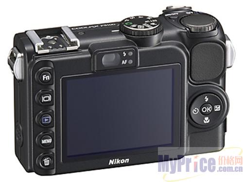 P5100机身顶部可见一个标准的尼康TTL四点热靴以及拍摄模式拨盘、参数拨盘以及快门/变焦一体组件。此外还有一个虽小巧但相当灵敏的开关键。尽管涉及的功能众多,但由于布局精巧,能够在单手的情况下利用右手大拇指与食指完成对这个区域按键拨盘的全部操作而不影响持机的稳定性。