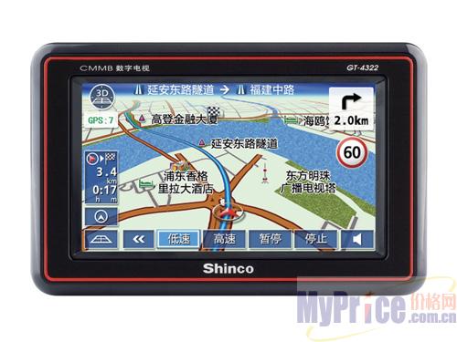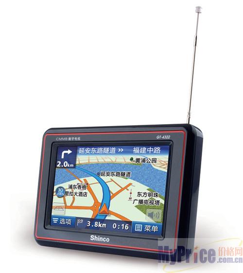 新科GT-4322数字电视导航器采用了4.3寸16:9触摸式液晶屏, Samsung 2443(400MHZ)高速CPU,1G存储,Microsoft Windows CE.NET 5.0操作系统。配备了SiRF第三代20通道高灵敏度接收芯片。内置CMMB(多媒体数字电视)接收芯片,并匹配可伸缩迷你天线,能高灵敏度接受无线电发射的高清数字电视信号。
