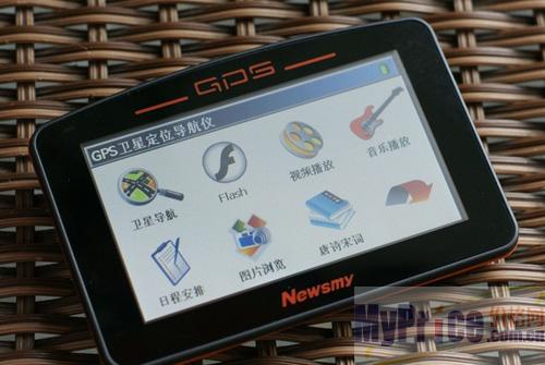在外观上,纽曼Q7的造型上与一般的GPS四四方方的外观不大一样。与一般的机型相比,四周看起来更为圆滑,在机身上部的弧形稍稍有些突出,看起来更加圆润。屏幕正面只在上面和下面部分分别印有GPS和Newsmy的标识。左侧设有两个小灯,开机状态下会发出蓝色和红色的亮光。
