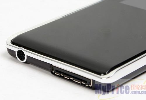 K3的侧面加了亮银色的边条设计,整体看上去非常动感时尚。机身右侧是电源开关和锁定开关的组合键,向下拨则是开关机,想上则是按键锁定。机身的底部设计了耳机输出孔和专用的数据接口,用于连接电脑或者扩展功能底座。而机身的上侧和左侧则没有设计任何按键和接口。