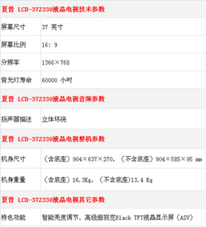 (二)最值37寸平板电视:夏普 LCD-37Z330