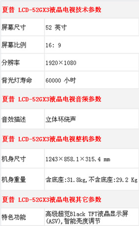 (六)最值52寸平板电视:夏普 LCD-52GX3