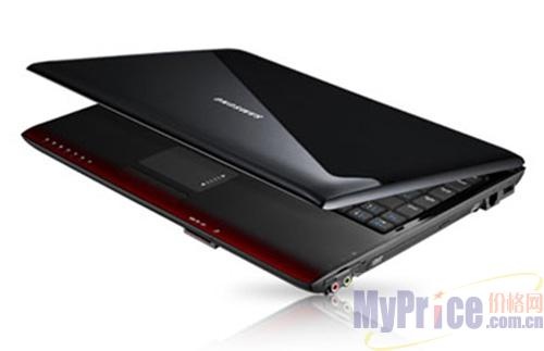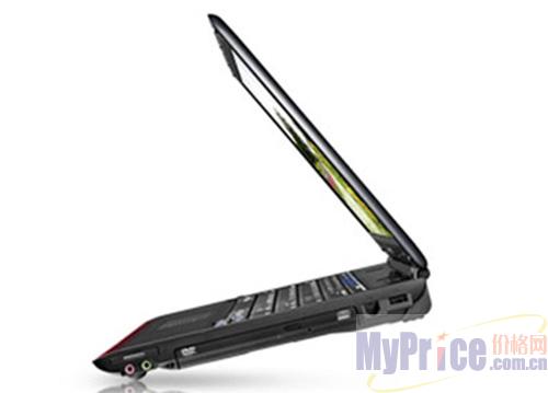 三星Q310采用了全新的设计,虽然依旧是一袭黑衣,但是搭配上红色元素,就多了些活泼、时尚的感觉。白色的三星Logo依旧位于酷黑的A面正中央,显得格外的显眼。同时本本也在模具上进行了革新,将散热出风口由Q70的右侧移到左侧,右掌托的下方是一系列的指示灯,可以让使用者更快捷的了解电脑的一些基本状态。