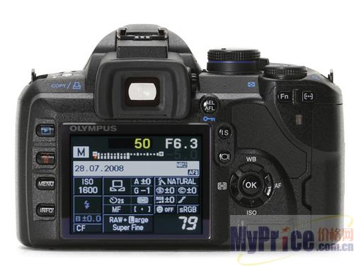 在奥巴的顶级旗舰单反E3上,使用了一款可翻转的LCD,不少用家都期待在E520上也能够配备。但我们现在见到的是一块2.7英寸23万像素分辨率的LCD,并未采用翻转设计。如果采用了翻转屏,机身厚度势必会增加,那么E520肯定不会像现在这么便携。并且,E520使用的是第二代超晶LCD,可视角度很大,在LiveView时即便是俯视或者仰视都不会有太大的问题。