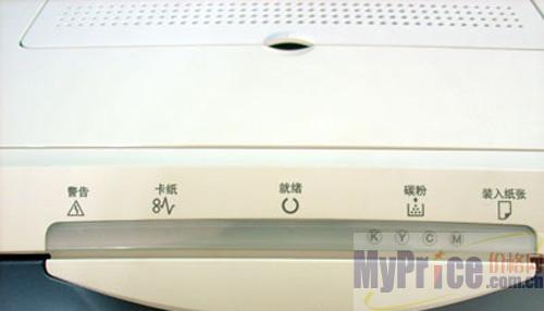 佳能LBP 5000的菜单区设计的非常简洁,没有设计液晶显示屏,在菜单区仅有五个指示灯,分别是:警告,卡纸,就绪,碳粉和装入纸张。当机器进行打印机工作时,用户可以看着指示灯的状态来进行打印。如打印机中出现故障,指示灯提示用户,以便用户检查并维修故障。