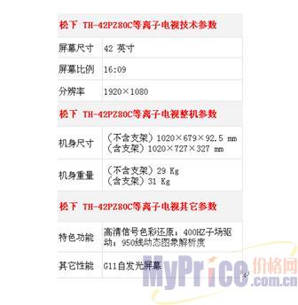 继PZ700C宣布停产后,松下PZ80C便作为PZ800C的经济版在市场上高调亮相,以非常高的性价比冲刺了全高清等离子市场。其中,TH-42PZ80C作为松下PZ80C系列在42寸的主推机型,近日在商家世纪电器网爆出6999元的超低价,直探业内底线,非常值得考虑。