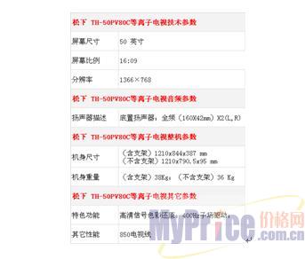 (三)松下TH-50PV80C等离子电视