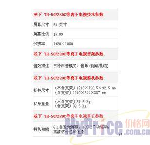 性能方面,TH-50PV80C作为50PV70C的升级版,拥有1366×768的标清分辨率。据世纪电器网的专家介绍,此款作为松下50英寸的主推产品之一,主要卖点包括:采用最新的G11等离子屏幕,秉承了自发光的优势,画面鲜艳锐利呈现;全新的“纯黑表现新预备放电控制”技术,黑色表现更加出色;电路部分升级到Vreal 3处理器/驱动器,支持高清信号色彩还原技术和400Hz子场驱动技术,实现安定流畅的动态影像;爱眼技术,随时检测周围环境的亮度,自动调整图像亮度和色彩,以期使电视画面达到符合人体工学的视觉舒适度;无铅屏幕与无铅焊接技术,充分发挥环保节能的特色优势。此外,强化屏与24P功能等,令TH-50PV80C的整体优势更加突出。