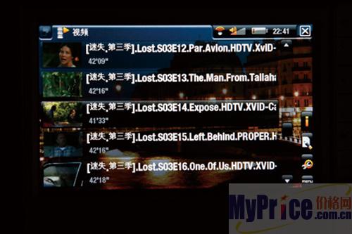 ARCHOS 605 WiFi的视频播放能力相对以往的产品也有了大幅提升,现在不仅可以支持原生AVI、Divx/Xvid等格式的视频,而且增加了对H.264格式以及 Real格式的支持,而且分辨率提也提升到了720×576,与DVD影碟分辨率相当。虽然现在还无法完全提供高清视频的支持,但由于叩开了H.264格式的大门,今后ARCHOS下一代产品提供高清播放能力将会非常方便。