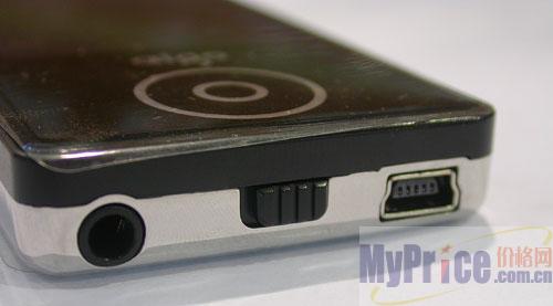 其他按键方面的改变也看出了爱国者的用心,耳机插孔,mini USB口,开机键这些不经常使用的按键都被设计到了机身下方,左侧为播放和录音的快捷键与爱国者F585的设计风格相去甚远。爱国者F586搭载的2英寸26万色220 x 176矩阵TFT彩屏比F585稍大一些,也算是中规中矩,勉强能满足看MP4的需要。
