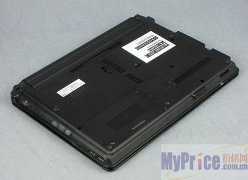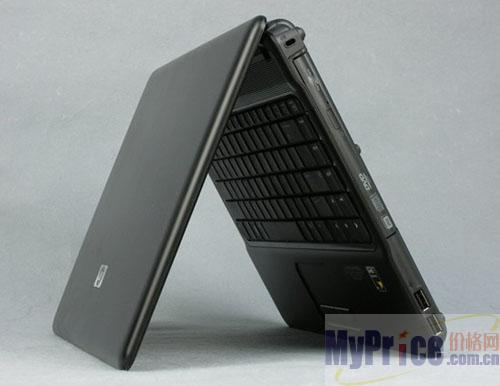 该机采用的是14.1寸宽屏液晶显示器,分辨率为1280×800,具有16:10黄金比例,屏幕四周配备了4枚长条型橡胶软垫,用以减缓外力对屏幕带来的冲击。该机机身尺寸为338×246.4×30.7mm,重量约为2.27Kg。
