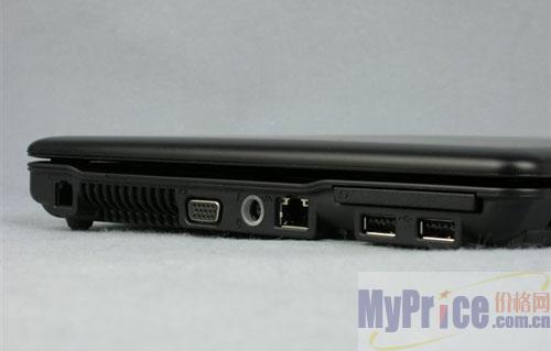 惠普6535s(FP646PA)提供了4个USB2.0接口、1个ExpressCard插槽、1个VGA接口、1个RJ-11接口、1个RJ-45接口、1组耳机音频输出/麦克风输入端口以及6合一读卡器。网络方面,该机内建56K Modem、百兆网卡以及802.11b/g无线网络模组。
