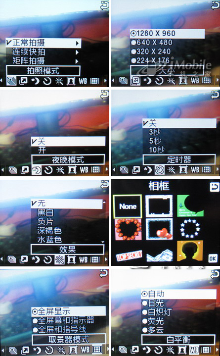 三星S3030C的背面内置了一颗130万像素的摄像头,虽然不支持自动对焦,但是在辅助设施上这设置了自拍镜的设计。它最大可拍摄1280×960像素的照片,并且支持连续、矩阵拍摄、夜间模式、定时拍摄、特殊效果、相框和白平衡等功能设置。