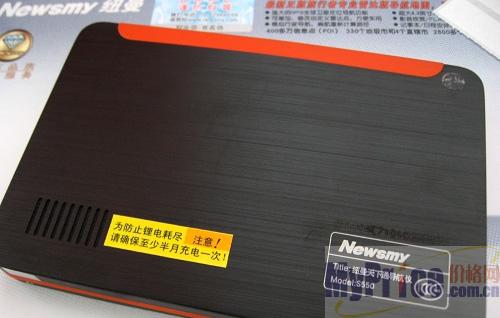 纽曼天下通S550整机外形方正硬朗,外观采用黑色为主要颜色,同时配以橙红色边框,显得非常醒目,比起前辈S999,在外形上的确改进不少。