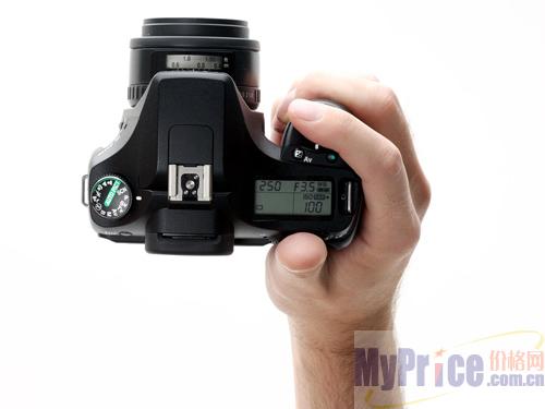 外型方面,K200D与前作K100D和K100D super外型相差不大,肩部副屏也保留了下来,在低端单反上面还是比较少见的。机身背面的液晶屏得到了升级,现在采用了一块2.7英寸23万像素的液晶屏,支持亮度可调。