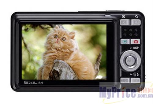 卡西欧Z29背面使用了一块一块2.7英寸宽屏TFT LCD显示屏占据了绝大部分空间,不多的几个按键设计在右侧。这款DC十分小巧,它的体积为92.45×54.86×23.1mm。