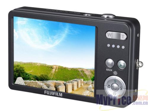 富士J25拥有1000万的有效像素,富士龙3倍光学变焦镜头,智能场景识别(SR Auto)模式,脸部优先技术(带自动红眼修正功能)和双重防抖功能。背面采用了2.7英寸23万像素的LCD显示屏。