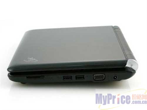 华硕EeePC 1000H提供了以下机身接口:3个USB 2.0接口、1个VGA、1个耳机/麦克风插孔、1个RJ-45和1个多合一读卡器。