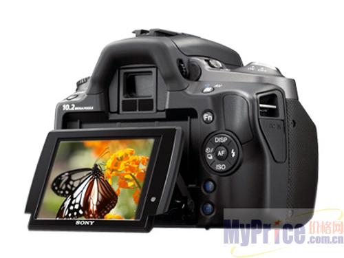 索尼α330的液晶屏幕是一块能够折叠的液晶屏,尺寸为2.7英寸,并拥有23万像素;这块屏幕可翻转的角度也进一步扩充到往下翻转55度,往上翻转135度,实现更多创意角度的拍摄。而且更让笔者感觉眼前一亮的是这款数码相机更有亮度感应器,可在不同的光线条件下自动调节液晶屏亮度,使回放照片更舒适。