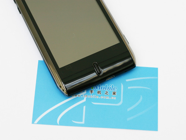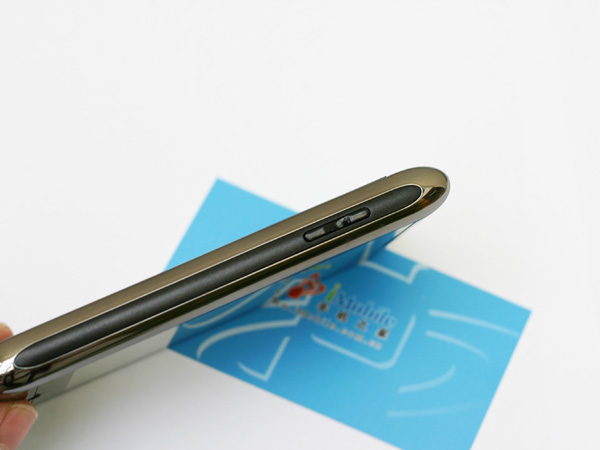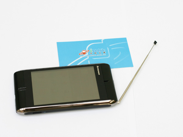 手机上方则是该机的电源键,位于手机的上方正中间,非常便捷。该机的电源键同样具有PPC手机那样的开启和关闭手机屏幕功能。上方还具有该机的CMMB电视功能天线,位于上面的右侧面。下方的右侧面则具有手写笔,两个附属物采用了同样的对称设计。