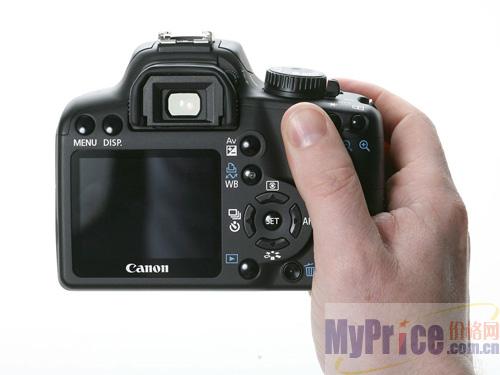 EOS 1000D采用2.5英寸、约23万点大尺寸宽视角LCD,浏览角度大、亮度高。它具有实时显示拍摄模式,可以直接通过LCD取景拍摄,视野率约100%,为在影室中拍摄提供了多样化的操作方式。