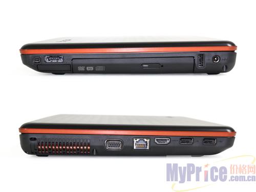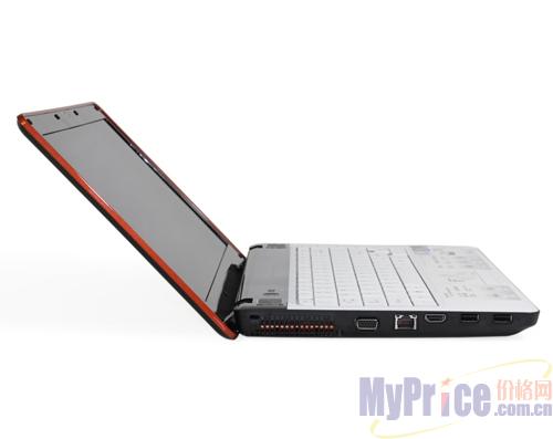 这款本本采用了以黑色为主的外观设计,机身线条设计简洁流畅,边角使用了小弧度的流线型处理,并且加入了橙色线条的修饰,使整机更显时尚。内饰部分的设计简洁大方,全白的C面设计显得非常清爽,而工整的键盘设计又显得颇为严谨。屏幕方面,该机搭配的是14英寸16:9的LED背光显示屏,支持1366*768的最佳分辨率。