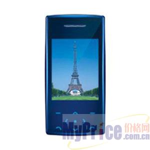 从外形上看,采用纯蓝色镜面设计,为了不破坏整体机型的美观,所以没有设计外置屏幕,远远望去像极了一瓶气质高雅的“香水”,吸引了不少时尚美眉。整体机身为95×48×16mm,屏幕分辨率为 240×320,触摸按键。