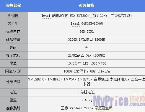 在配置上,采用Intel 酷睿2双核 ULV SU7300+Intel GS45+ICH9M芯片组合,内存支持DDR2 800,内存容量高达2GB,同时拥有1×SODIMM内存扩充槽,最大内存可以扩充到4GB,再加以320g大容量硬盘,为处理数据和存储海量数据做好充分准备。此外该机还集成了130万像素摄像头。真可谓麻雀虽小,五脏俱全。
