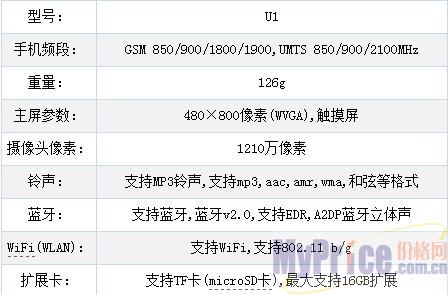 在外形上,直板式造型设计,机身三围尺寸为112×55×13.3mm重126克,,正面搭配一款3.5英寸360×640像素的16:9宽全触摸式屏幕,采用电阻式触控,使用手指、触控笔即可实现操作,屏幕显示效果清晰细腻。从较早的K700c开始,索爱就以数码相机的外型得到了大量的粉丝,该款搭载1200万像素的智能手机可以算是手机史上最大的挑战吧。专业的Xenon氙气闪光灯以及专业的LED对焦灯,如果能给U1武装为光学变焦镜头,这势必更令人兴奋。在配置上,搭载S60系统,支WCDMA3G网络,总体性能表现强悍。