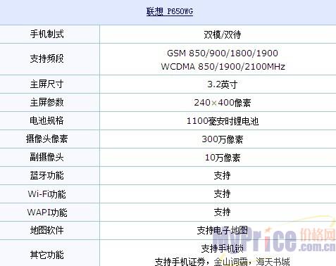 编者总评:联想 P650WG支持WCDMA与2G主流GSM制式的双模双卡,网络功能相当强大。