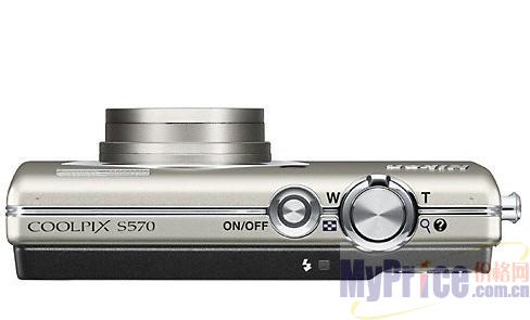 外形上,尼康S570的身段非常小巧,三围尺寸为92×56.5×21.5mm,重120g,身外观采用了轻巧坚固的全金属材质,机身背面采用一块2.7英寸23万像素的LCD显示屏,不过显示效果比较一般。 性能上,尼康S570采用了一枚1/2.33英寸CCD感光元件,有效像素达到了1200万。该机使用EXPEED影像处理器,支持最高4000×3000分辨率的图片拍摄。可以拍摄出精彩的人像图像,脸优先自动对焦功能可在拍摄每张照片时自动侦测出多达12张人脸。另外,该机最大光圈为F2.7,内置了闪光灯并支持电子防抖,性能表现方面也是非常的出色。