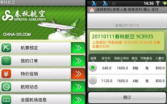 在3G当道的时代,手机订机票,已经不是《国产零零七》里的无厘头式幻想,而是实实在在在我们身边上演真实故事,对于繁忙的商务白领来说,爱可视ARCHOS43平板电脑不仅可以像手机一样方便携带、握持使用,而且搭载了高速双核处理器和1600万色触摸屏,只要有WIFI热点的地方,就可以方便随时拿出来订机票、订客房,即便没有WIFI热点,也可配合手机扩展3G上网登录网上旅行票务系统,让平板电脑摇身一变成个人出行的好帮手。