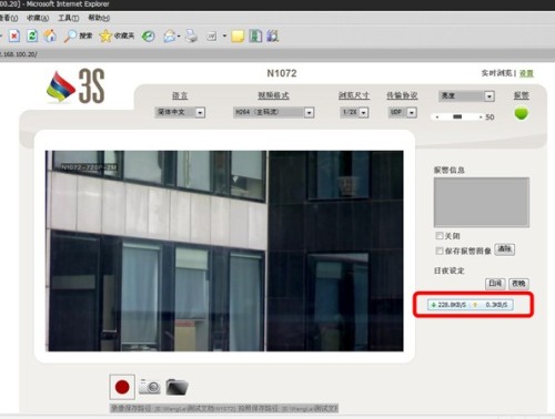 我们通过有网络流量监测的电脑,对3S N1072网络摄像机进行实测。发现在2M码流下即可展现出1600x1200的二百万模式清晰的画面。