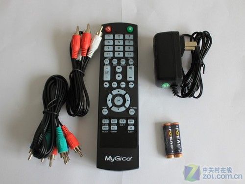 美如画R4的配件比较丰富,有遥控器,另外配有两节电池,还有就是色差线以及AV线,电源线。