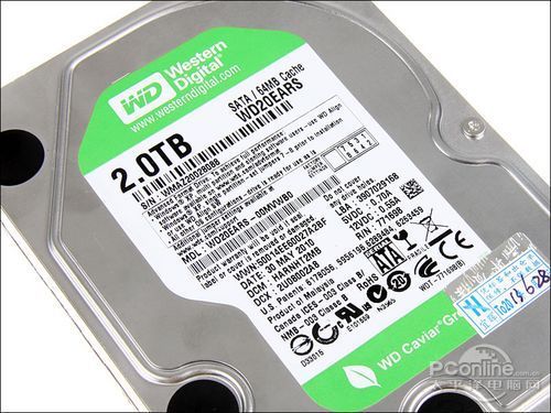 西部数据 2TB SATAII 64MB/绿盘属于Caviar Green绿盘系列,缓存64MB,接口SATA 3Gbps,采用了三块碟片封装模式,单碟容量达到了667GB,总容量为2TB。