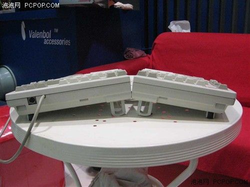 Cherry MX 5000 ergo-Plus键盘左、右两部分之间的夹角有180度、170度、160度三种选择,而前后倾角可以在5到12度之间调整。