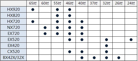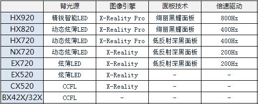 由于BX系列大都集中在40寸及更小尺寸的机型之中,因此BX系列中低于40寸的小尺寸机型全部采用32×命名,而且它们的分辨率全部是WXGA,即1366×768,而不是FULL HD全高清。