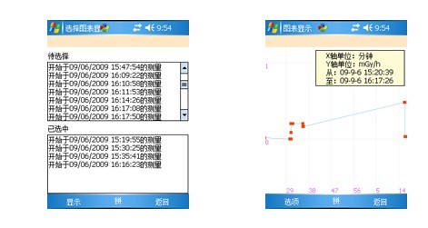 图29 图30 在图29的菜单中选择“图表显示…”,出现图29所示的界面。上方的“待选择”列表框显示所有可选择的数据,单击感兴趣的条目,该数据将被移动到下方的“已选中”列表,如图31所示: