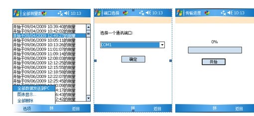 图 51 点击输出趋势图到文件按钮,可以把趋势图以wmf文件格式另存到文件系统中去。3-4从PDA传输数据 点击从PDA传输数据,软件弹出对话框提示选择通讯端口。如图52所示。