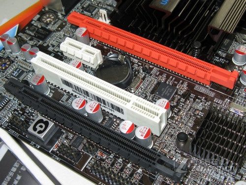 扩展方面,主板提供了2条PCI-E x16插槽,支持双卡交火,同时主板还提供了1条PCI-E x1插槽和1条PCI插槽。