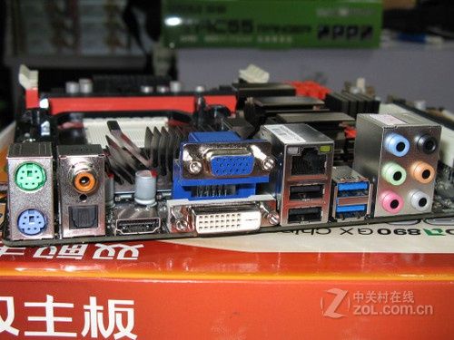 I/O方面,主板提供了PS2键鼠接口、光纤\同轴接口、HDMI\DVI\VGA视频输出、USB2.0\USB3.0接口、音频和网络接口。