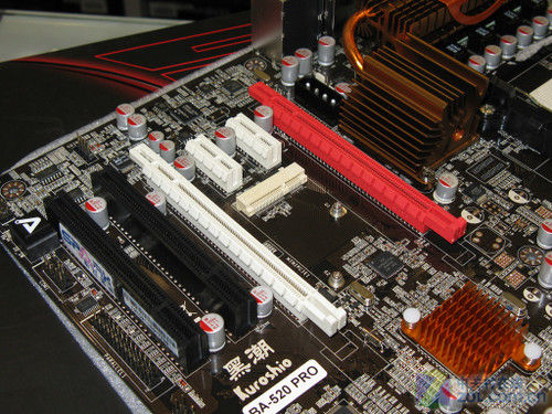 扩展插槽方面,主板提供了两根PCI Express X16插槽,两条PCI Express X1插槽和两条PCI插槽,足以大部分用户扩展。