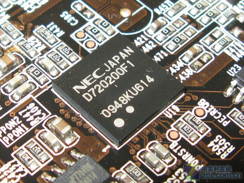 主板通过板载一颗NEC的芯片来提供对USB 3.0的支持。